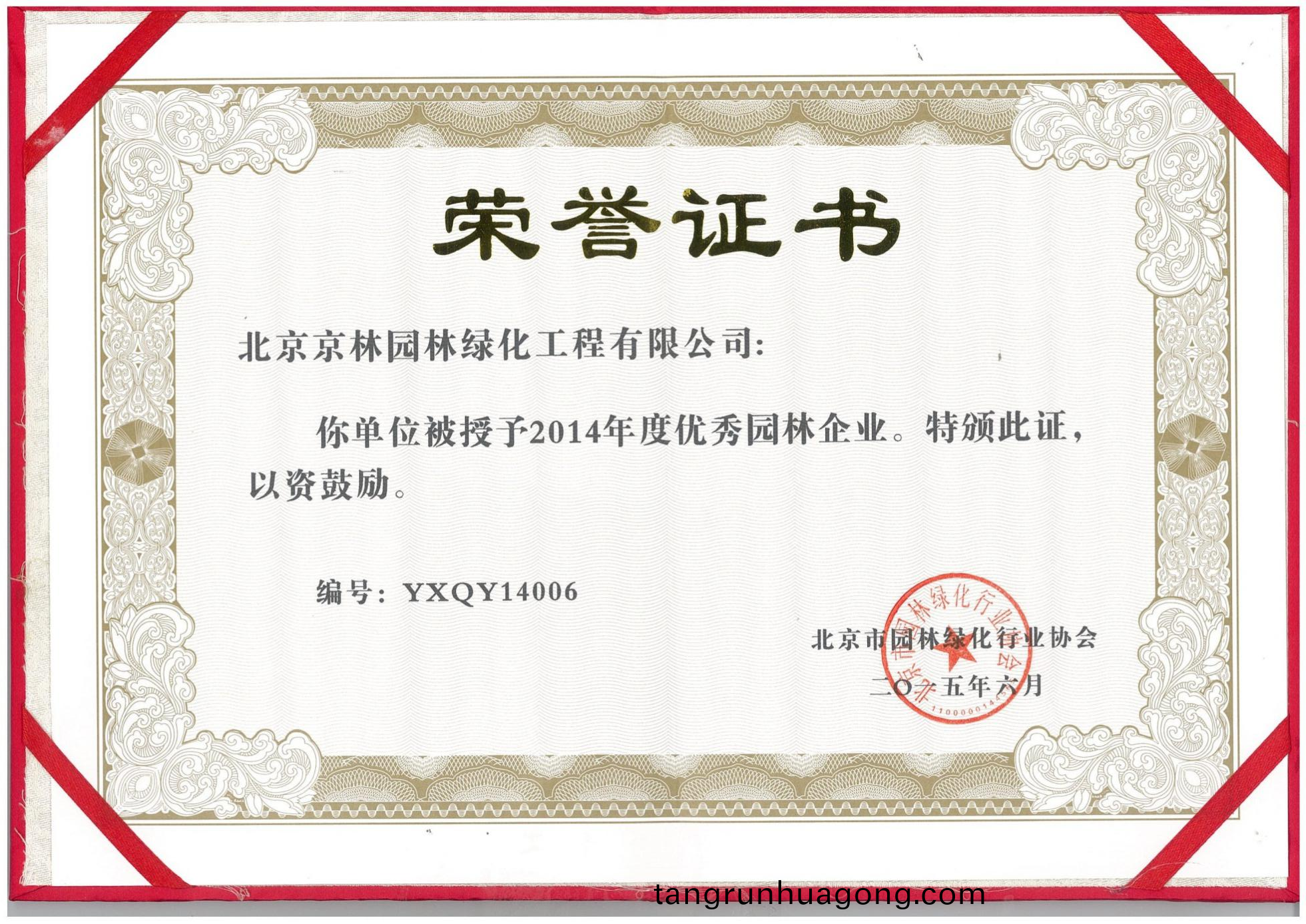 北京市園(yuan)林綠化行業協會2014年度優秀園林企(qi)業