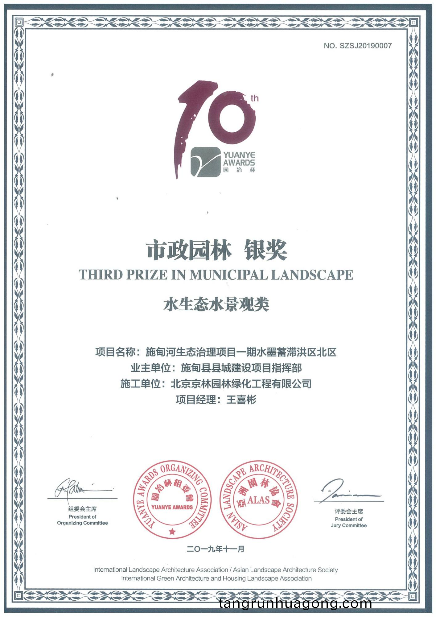 2020年園冶桮(bei)市政園林銀獎——施甸生態治理項目一期水墨(mo)蓄滯洪區北區