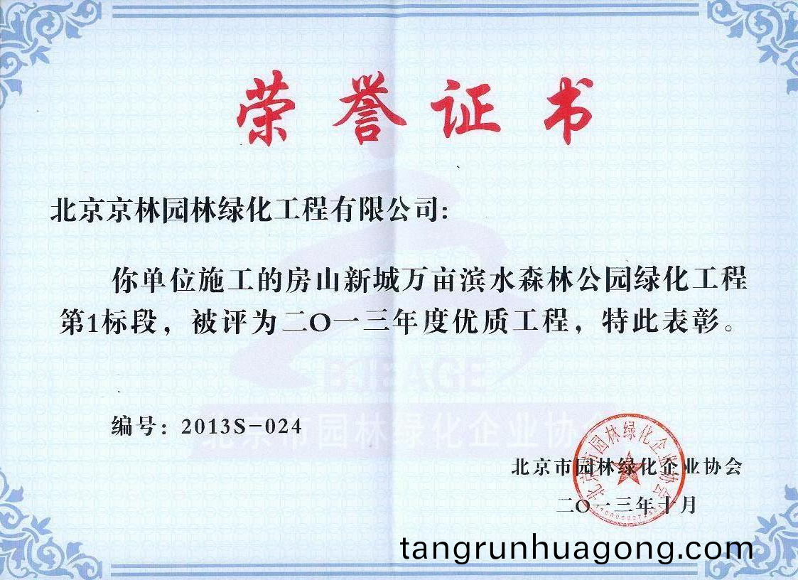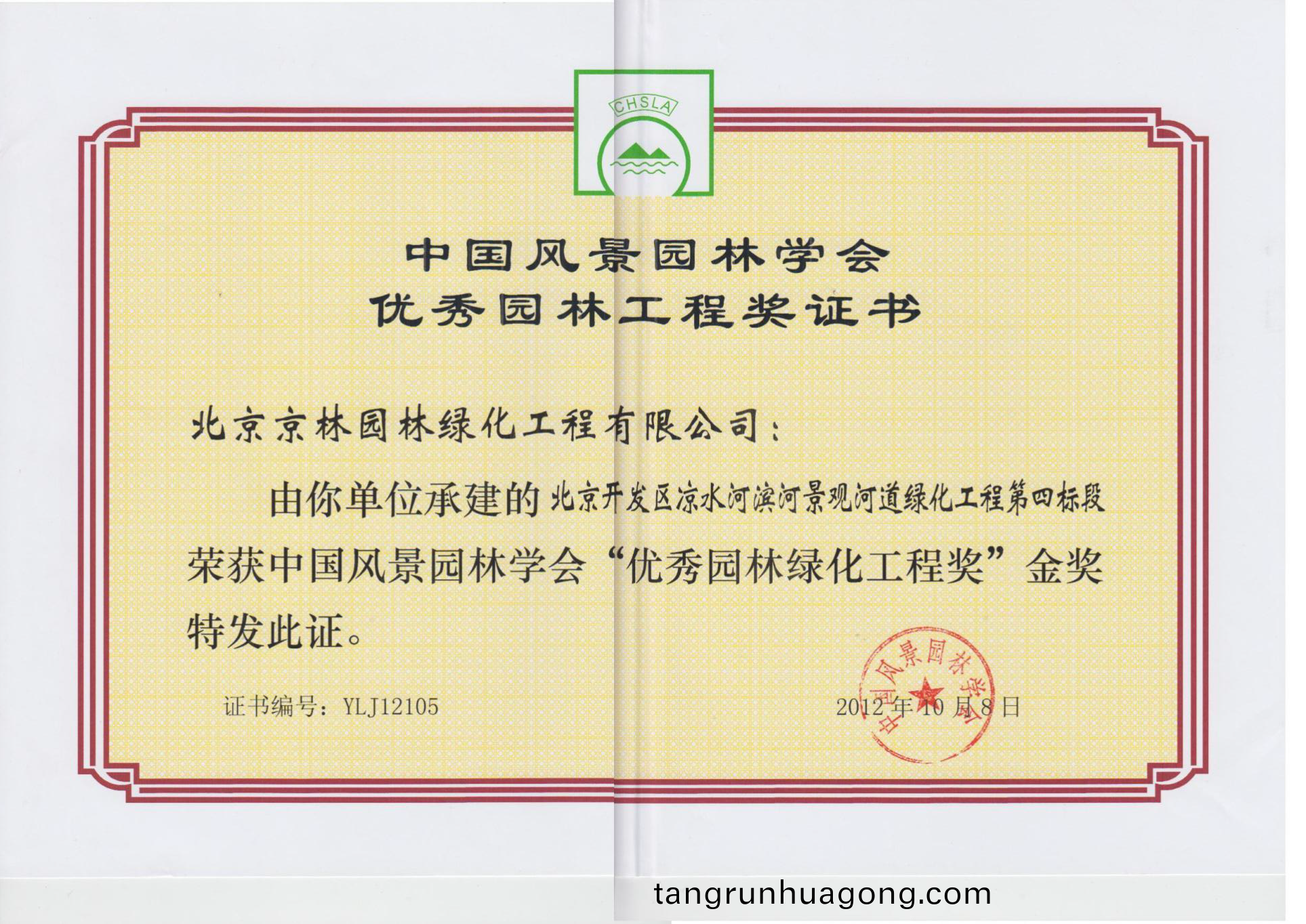 中國(guo)風景園林學會優秀園林綠化工程獎金獎——涼水河濱河景觀河道綠化工(gong)程第四標段